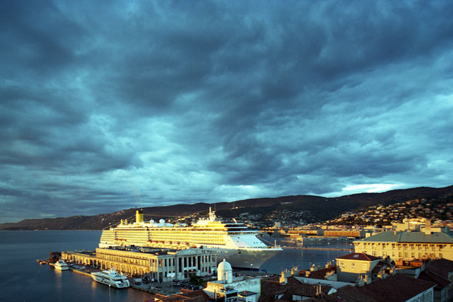 Stazione marittima, nave crociera, Costa Atlantica, rive di Trieste, notturni, pescheria, foto artistiche, turisti, palazzi rive di Trieste, panoramica Trieste, piscina, Savoia, difa Robi cocal. Melara. Porto Vecchio, Marina San Giusto, sacchetta, benzinaio, Adriaco, circolo Vela, università, pullman, turisti, shopping, corriere.