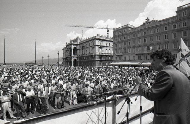 Stazione centrale lavori, 1993. Stadio Rocco, futuro Palatrieste. Municipio, protesta 1993. De Gregori concerto.