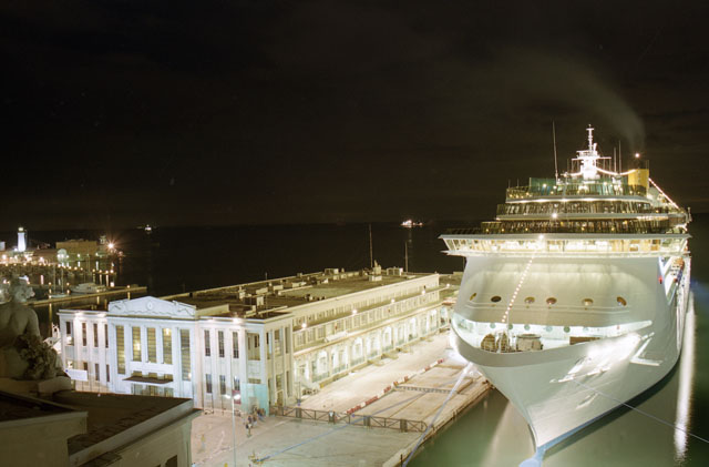 Stazione marittima, nave crociera, Costa Atlantica, rive di Trieste, notturni, pescheria, foto artistiche, turisti, Canterna.