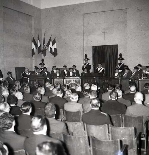 Console austriaco. Convegno popolari, P.zzo Diana. Rossetti. Americani militari. Artigiani, Santarossa. Scene film tribunale.