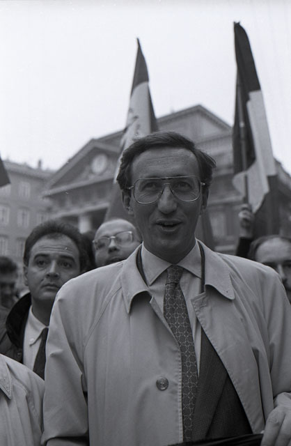 Questore tribunale, 1992. Vigile urbano, centro chiuso, 1992. Calcio, Italia campione del mondo, piazza Unità, giovani tifosi, anziani, gioco delle carte. Consiglio comunale, 1992. Ladi Minin, Sgarbi, Suban, Piazza Unità, sciopero taxi, protesta catene. Piazza della Borsa, camera di Commercio. Statua Leopoldo I, 1992. Protesta contro Illy. 118 elicottero, Barbacini.
