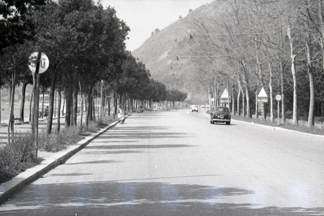 Segnali limite velocità viale Miramare ; turisti francesi in vespa sulle rive