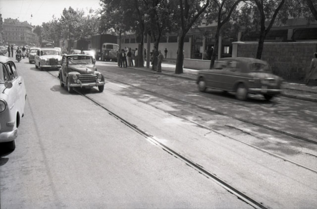 Arrivo a TS carovana Circo Orfei (anche veduta rotaie tram v.le Miramare e Faro)
