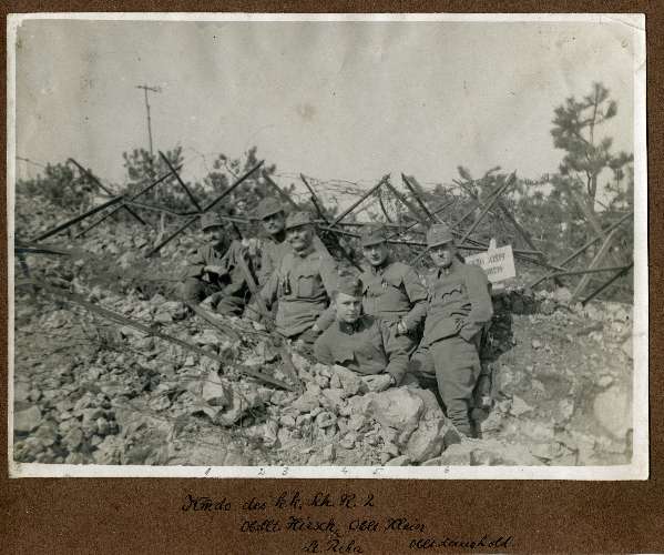 Kmdo des k. k. Sch. R. 2. : Obstelt. Hirsch; Oblt. Klein, Lt. Riha, Oblt. Lauehold