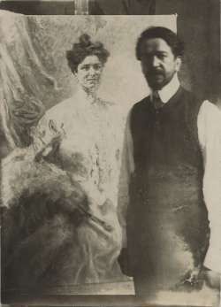 Ritratto di Umberto Veruda davanti ad un suo dipinto