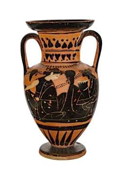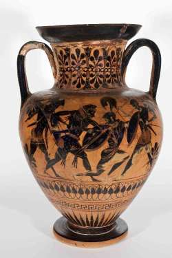Anfora attica a figure nere. Lato A: combattimento di Eracle contro le amazzoni. Lato B: Dioniso e Arianna