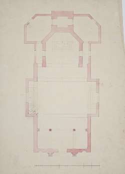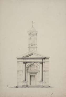 Progetto di chiesa in stile neoclassico con campaniletto posteriore