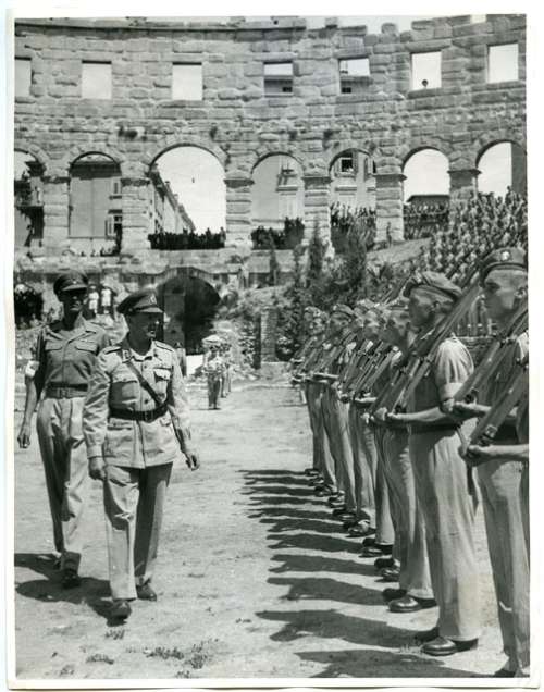 Il Maresciallo Alexander passa in rivista truppe schierate nell'Arena