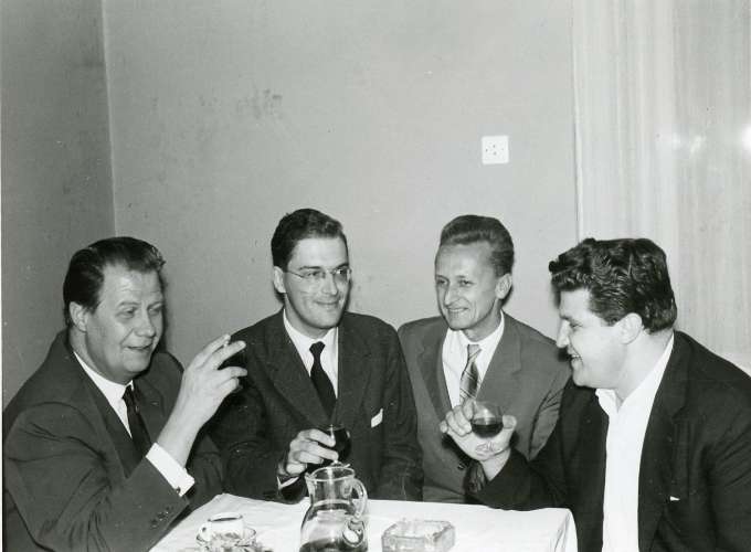 Pavle Merkù con Samo Hubad e la moglie Dana Hubad in occasione della esecuzione di Von der kindesmörderin Marie Farrar