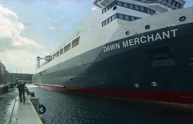 Navi turche. Riva Traiana. Camion turchi, camionisti turchi, traghetto turco Dawn Merchant.
