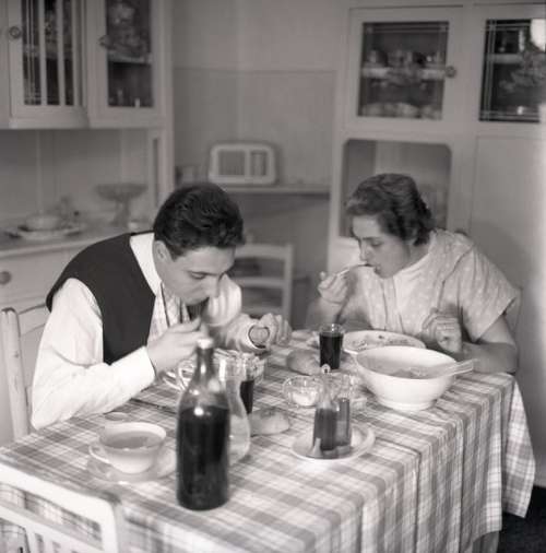 Livio Amstici e madre a tavola