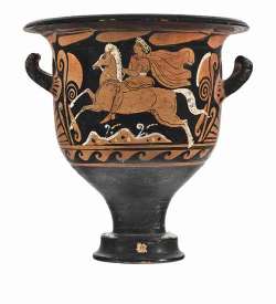 Cratere a campana campano a figure rosse Lato A: cavaliere; Lato B: due giovani ammantati