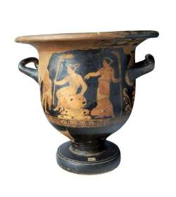 Cratere a campana apulo a figure rosse con scena bacchica.