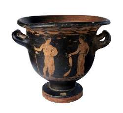 Cratere a campana apulo a figure rosse. Lato A: giovane e fanciulla; Lato B: due giovani ammantati.
