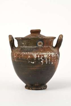 Stamnos con coperchio a vernice nera sovraddipinta