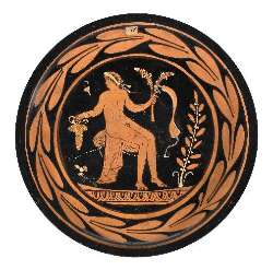 Phiale apula a figure rosse. Lato A e B: Dioniso e menade