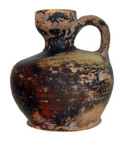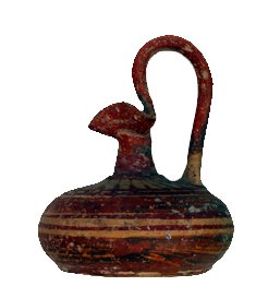 Olpe miniaturistica piriforme con ansa sopraelevata