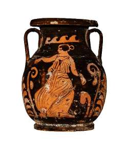 Pelike apula a figure rosse. Lato A e B:testa grmminile
