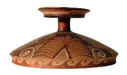 Piccola lekanis siceliota a figure rosse con teste femminili sul coperchio