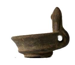 Brocca con ansa a rotella in ceramica messapica con motivi vegetali