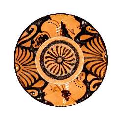 Piccolo coperchio apulo a figure rosse con due teste femminili tra palmette