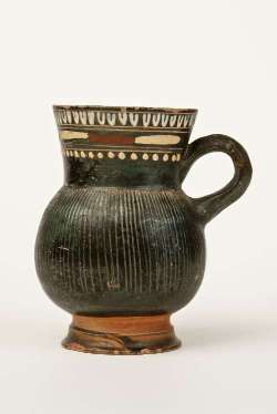 Askos con palla di lana e coppa a vernice nera sovraddipinta