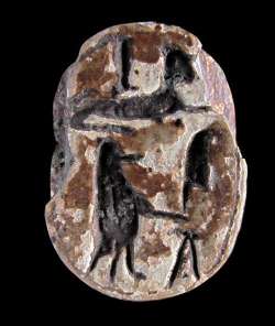 Scarabeo in steatite con incisioni non interpretabili, dall'Egitto