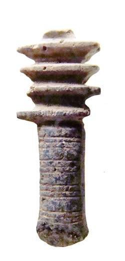 Amuleto raffigurante il pilastro djed in pietra, montato in una collana, dall'Egitto