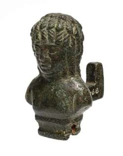 Applicazione o peso raffigurante busto femminile in bronzo, da Castel San Sergio (Cernical - Slo)