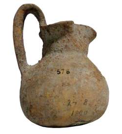 Oinochoe con ansa sopraelevata in ceramica grezza