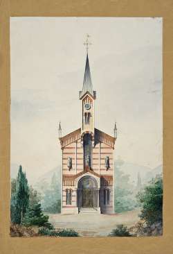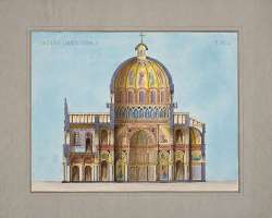 Progetto di chiesa in stile neoclassico con campaniletto posteriore