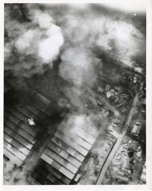 Base guarding Japanese homeland blasted by U.S. Liberators