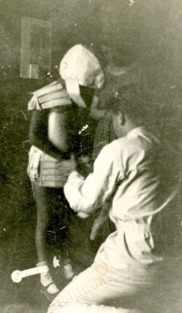 Ritratto di Diego de Henriquez mentre veste Fiore de Henriquez con finta armatura rinascimentale