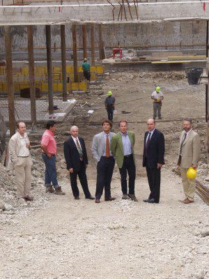 Il Sindaco Roberto Dipiazza nel cantiere del parcheggio di piazza Vittorio Veneto : sopralluogo : Trieste : 2002
