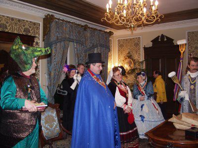 Delegazione di maschere carnevalesche di fuori Trieste partecipanti al Palio Carnevalesco dei Rioni in salotto azzurro del Municipio : Trieste : 2002