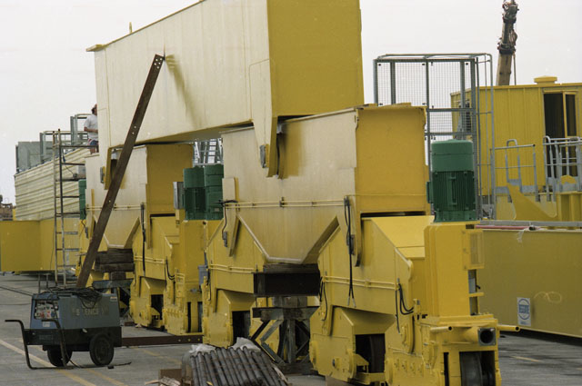 Molo VII, gru posa in opera, operai, lavoro, ferrovia, treno, container, saldatore.