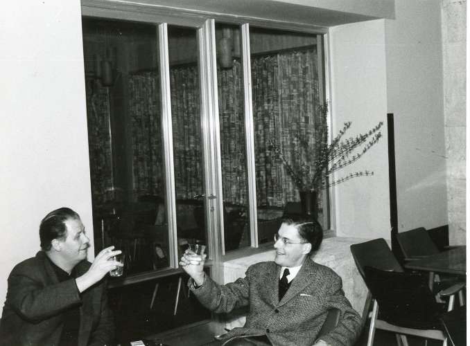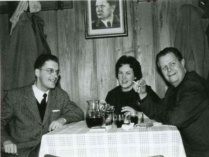 Pavle Merkù con Samo Hubad e la moglie Dana Hubad in occasione della esecuzione di Von der kindesmörderin Marie Farrar