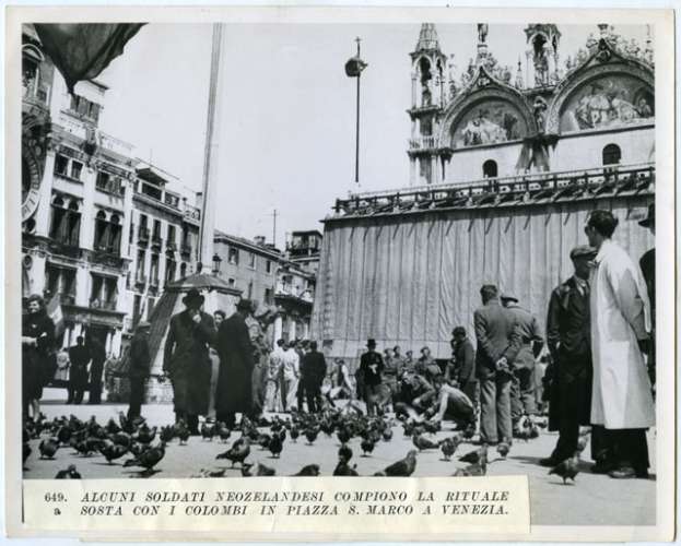ALCUNI SOLDATI NEOZELANDESI COMPIONO LA RITUALE SOSTA CON I COLOMBI IN PIAZZA S. MARCO A VENEZIA