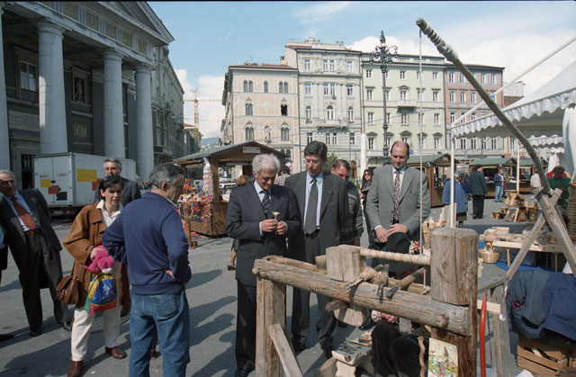 Mostra artigianato Camera di commercio, piazza della Borsa, Donaggio, Bronzi, Cespa, Ziberna. Provincia, Codarin, Sluga, foiba Basovizza 25.04.1999. Risiera 25.04.1999