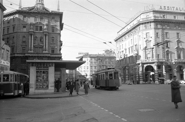 Incidente tra carro con cavallo e Fiat 1100 in piazza San Giovanni