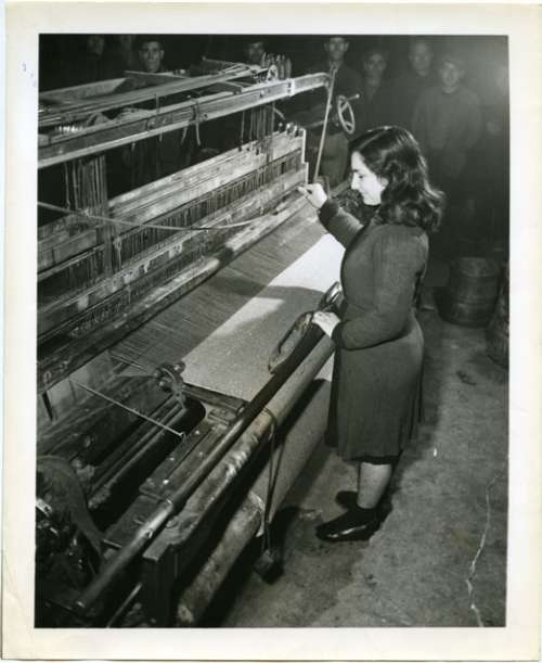 Italian Factory Back In Operation : A blanket begins to take shape in a weaving machine.