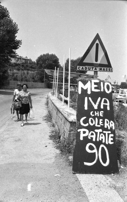 Scritta "Meio IVA che colera Patate 90” a Muggia