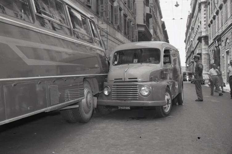 Incidente stradale in via Geppa tra furgoncino e pullman jugoslavo