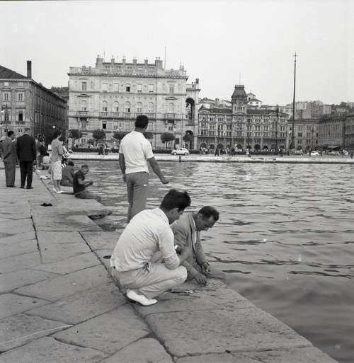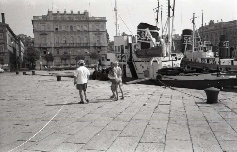 Fiat 1400 di Servizio Stato porta donna e bimbi al bagno di Grignano, ore 11 scendono
