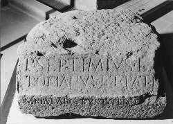 Dedica del cavaliere e patrono Publio Settimio ... in calcare da Trieste dal Giardino del Capitano