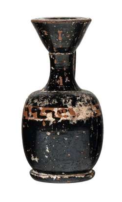 Lekythos ariballica attica a figure nere con fascia a meandro