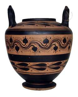 Stamnos apulo a figure nere con motivo vegetale a fasce