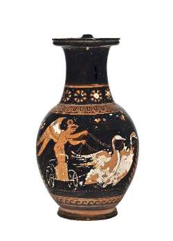 Olpe apula a figure rosse con eros in cocchio trainato da cigni