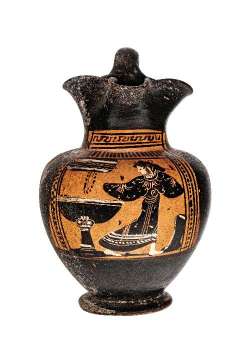 Oinochoe forma IIId a corpo espanso a vernice nera sovraddipinta