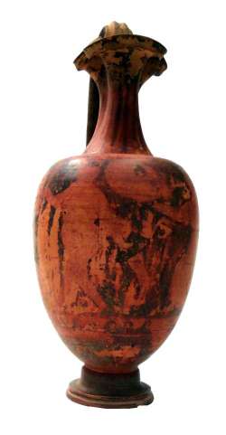 Oinochoe a vernice nera tendente al rosso sovraddipinta